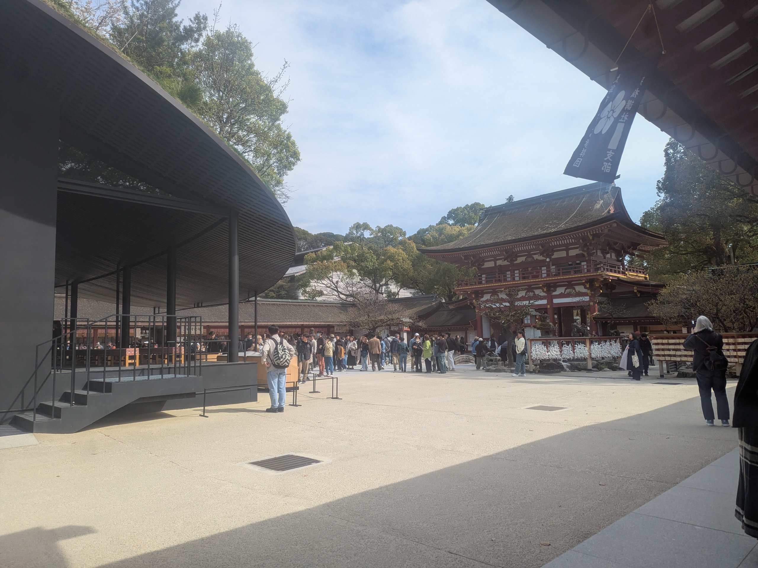 実はこの地を旅行したのは、初めてだった。観光地を観光バスで、通ったことはあったのだが。なので、是非とも行って名物を食べ、頭が良くなる神社にお詣りしなければ、と思っていた。(娘と共に)少々遅かりし、だがやっと願いがかなった。✨️しかも、娘の同級生の子と(自閉症仲間💦)そのママに連れて行ってもらったのだ。天気もよく、外国人も沢山いた。神社⛩️の屋根の上に木々が生えていて、トトロの森のようで、何とも不思議だった。😲🌸桜は満開か✨️向かう✈️飛行機は小さめだったが、順調に着いたことは着いたが、〇〇空港は混雑するため空きがなく空くまで回旋して空くのを待っている、と。いやいや、苦手だから早く着陸して〜😥何とか無事に着いて良かった。😮💨空港は街中だし、国際空港でいつも賑わっていた。うちの最寄り空港とは大違い。💦井の中の蛙だった。東京だけが都会じゃないんだな。😲