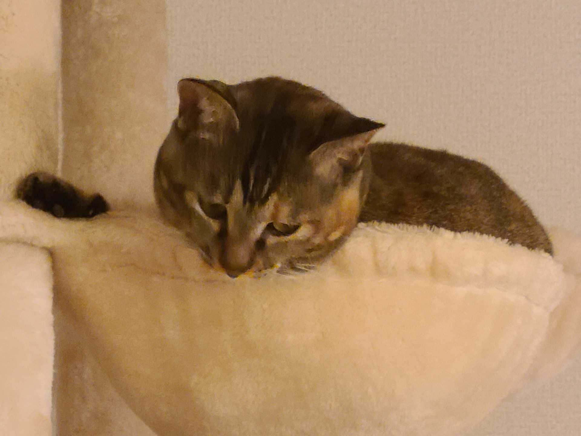 寒い❄️ので、かごから中々出られませんにゃ🐱⤴️