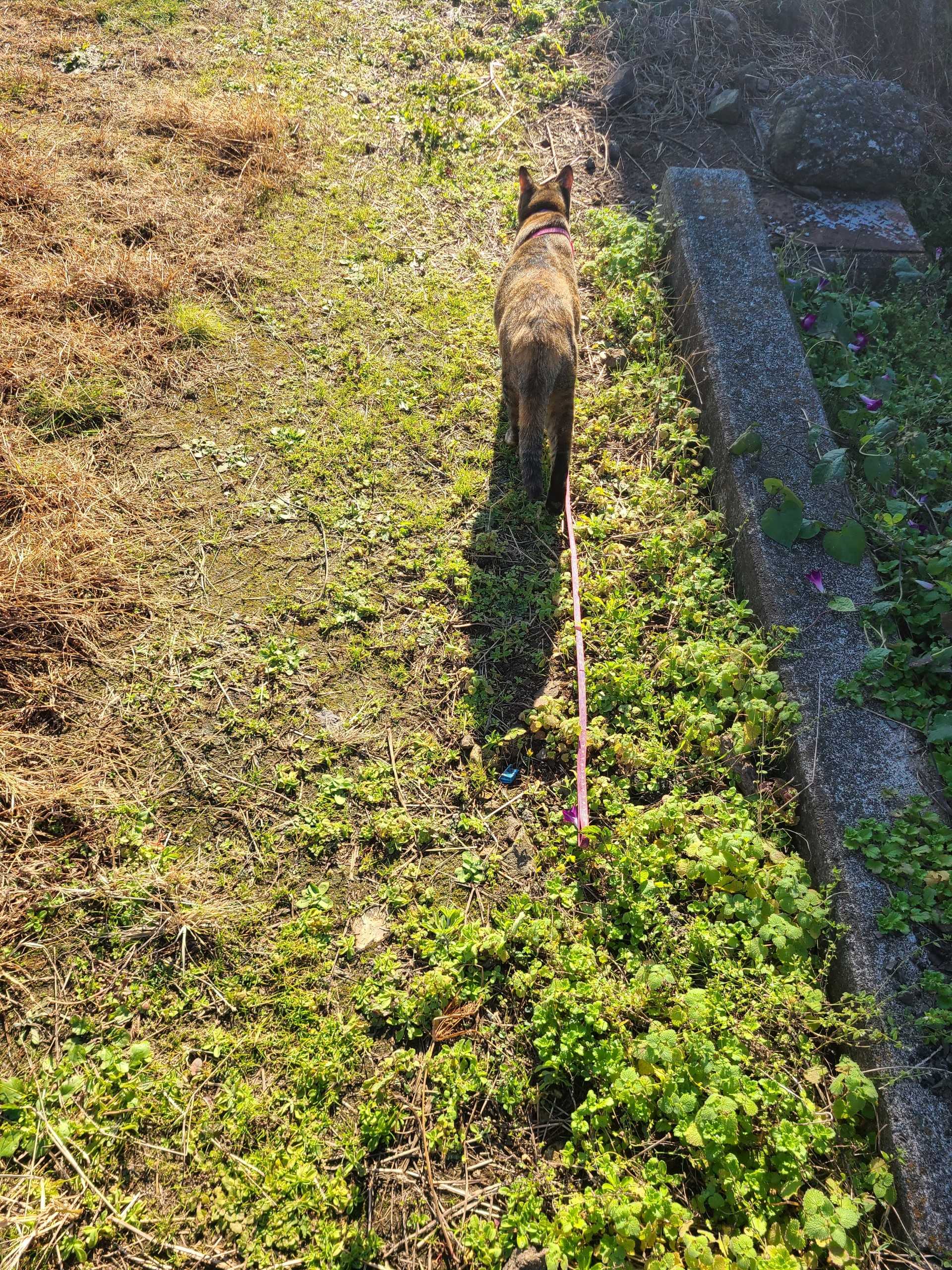 雑草の道を行く🐈にゃん。数年後は、お花畑を行く🐈️に変わるかも知れない。