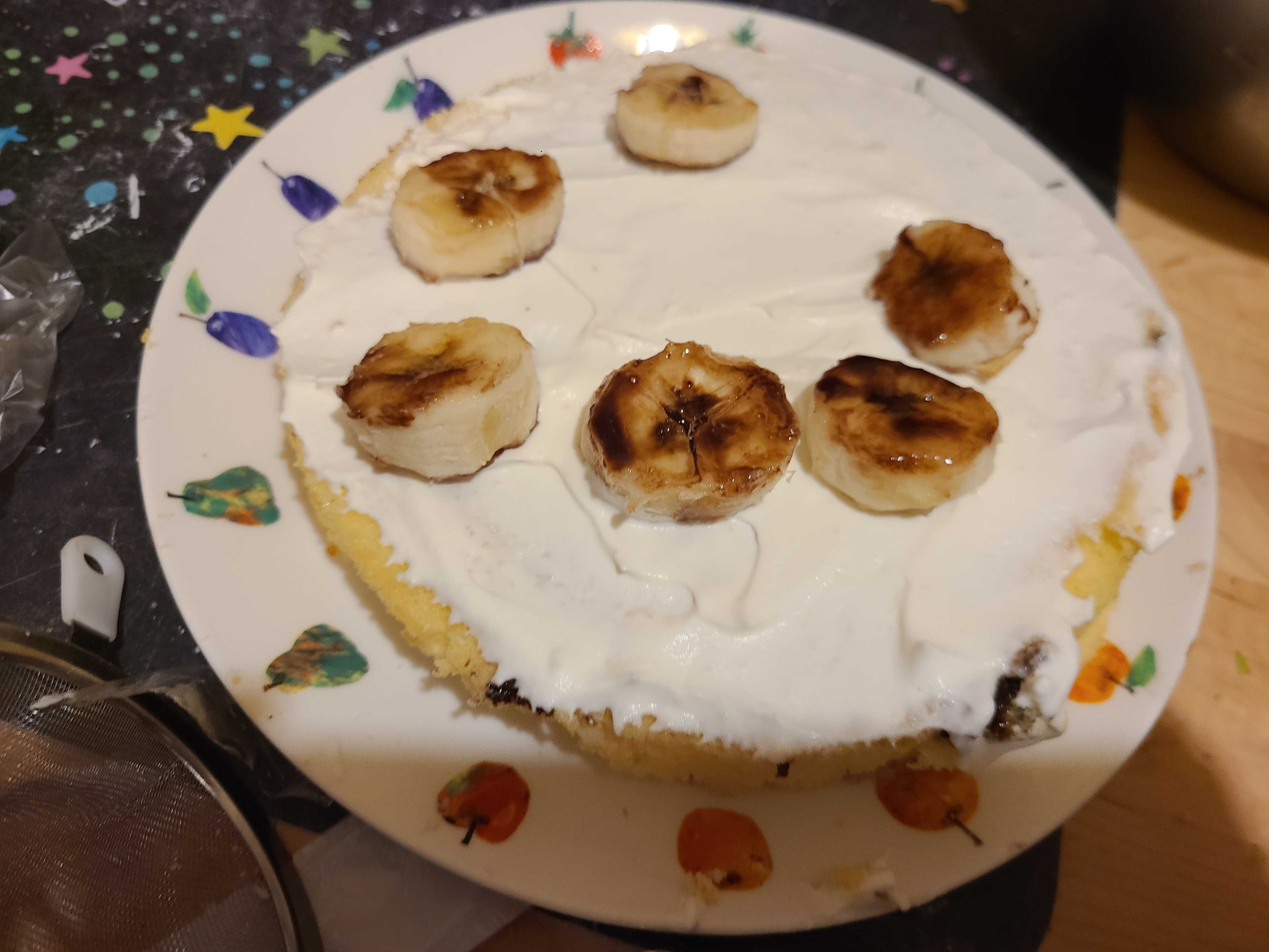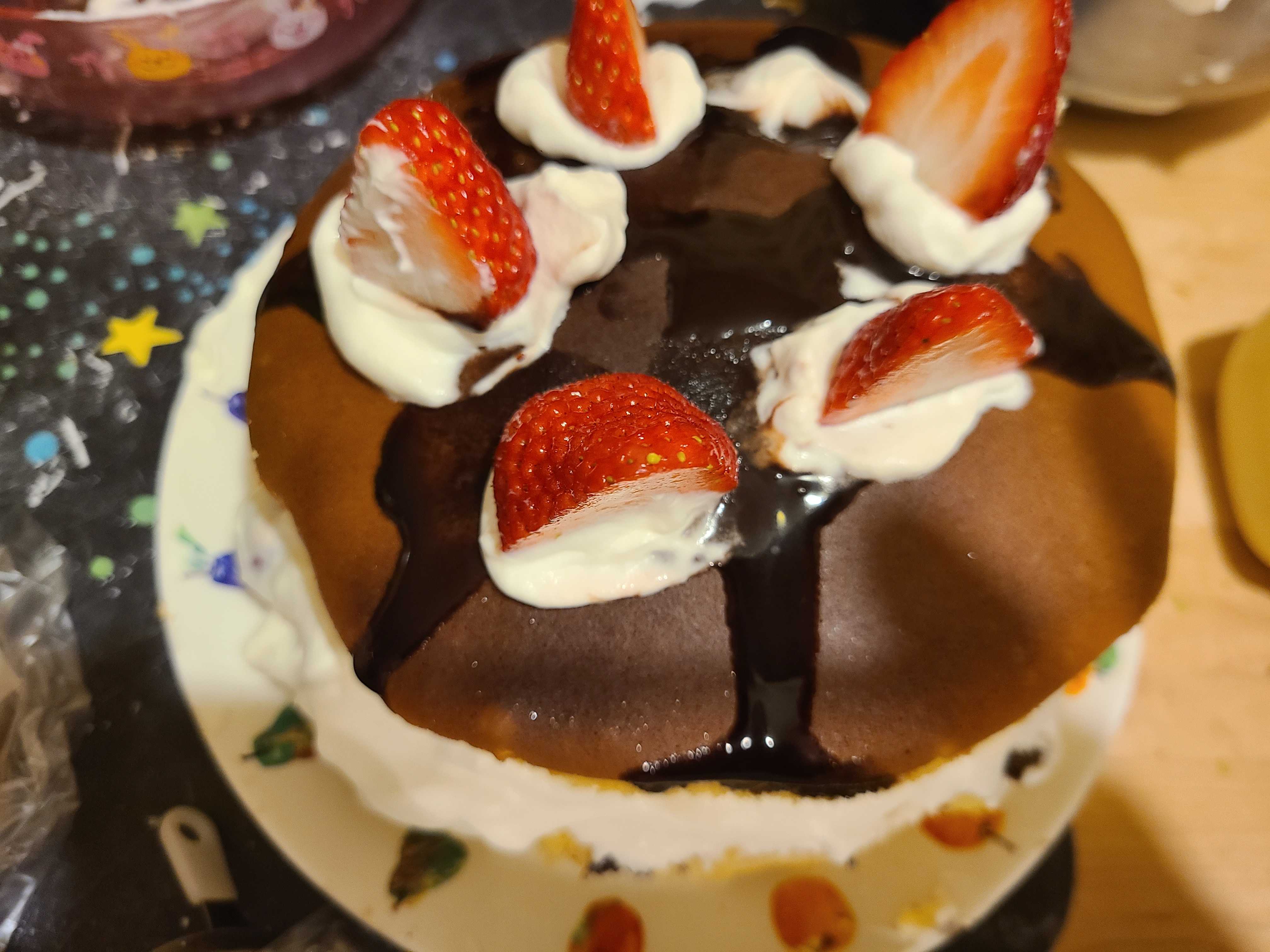 今日は、夫ちゃんのバースデーに作っておいたケーキを作った。こちらも、娘ほぼ一人で作った。😌