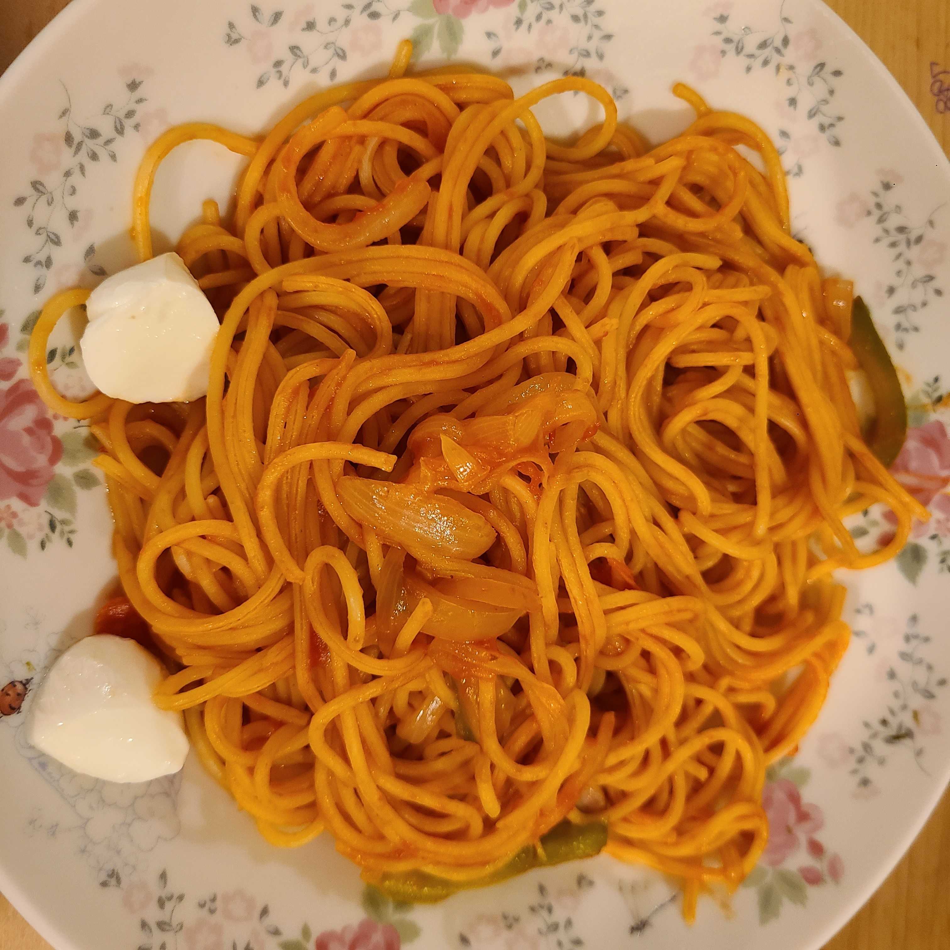 夕食は、最近パスタ🍝マイブームの娘が作ってくれましたよ。😁まだ、メニューはナポリタンだけですけどね。