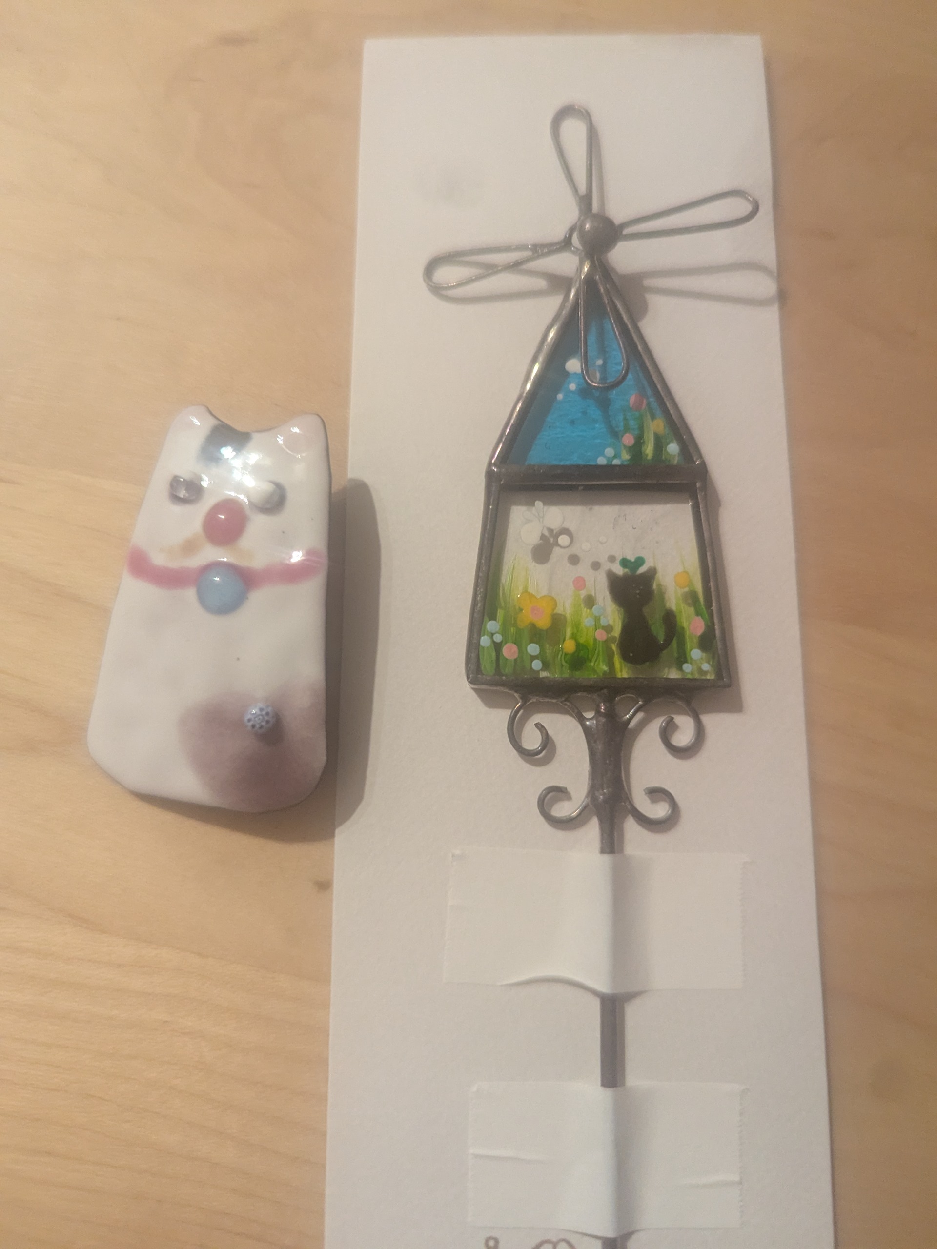 とにかく忙しかったGW前。風邪が一時は悪化。とにかく鼻が壊れた。😩ティッシュをいっぱい使った。まだ、完全では、ない。しかし、ちょっと回復し何とか😸イベントへ行ってきた。なんせ、ワークショップを予約していたから。ちょっとドライブがてら。🚗♫しばし寒い外で迎えの🚗を待ってたから風邪を引いたと言ったら、ヘソを曲げた夫を置いて。2人ドライブ。私は、七宝焼。娘は猫おもちゃを作った。猫おもちゃは、マンツーマン。良かった。😊そして行きたかった〇〇珈琲へ。✨️ハワイアンな雰囲気で、お高めだが夕方でも連休中とあって混んでいた。帰り道娘が喉が痛いと。😥移してしまったようだ。明日は丁度予定は入れてなかったから、休もう。治るといいな〜。写真は、七宝焼と購入したガーデンピック。庭もキレイに変容、断捨離しないとな。😥