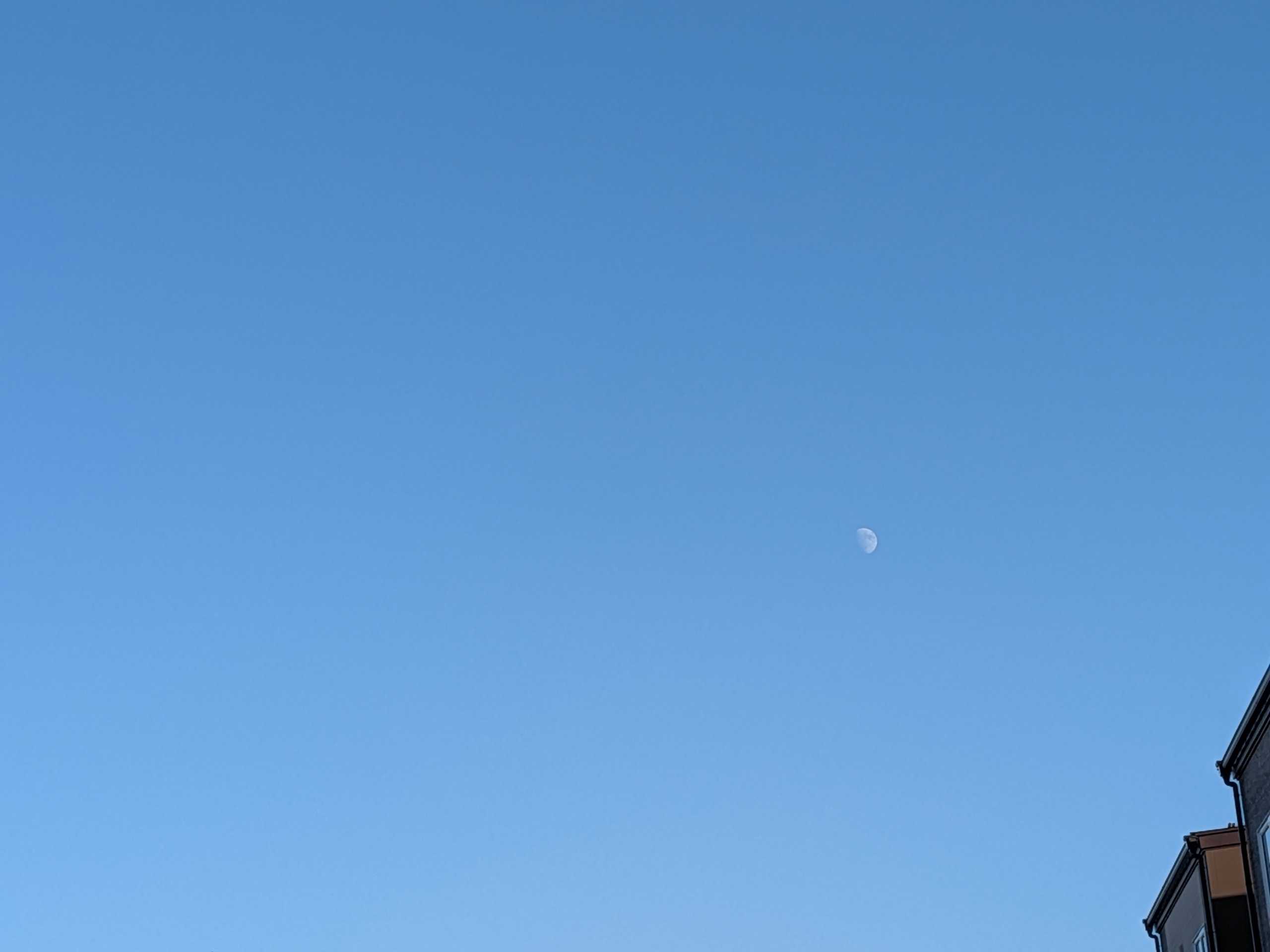 もう月は出てきた。薄ーいけど。暗くなるのを待っている。🌝♫あーと何回寝たら〜お月見よ〜🎑お正月の替え歌🤭