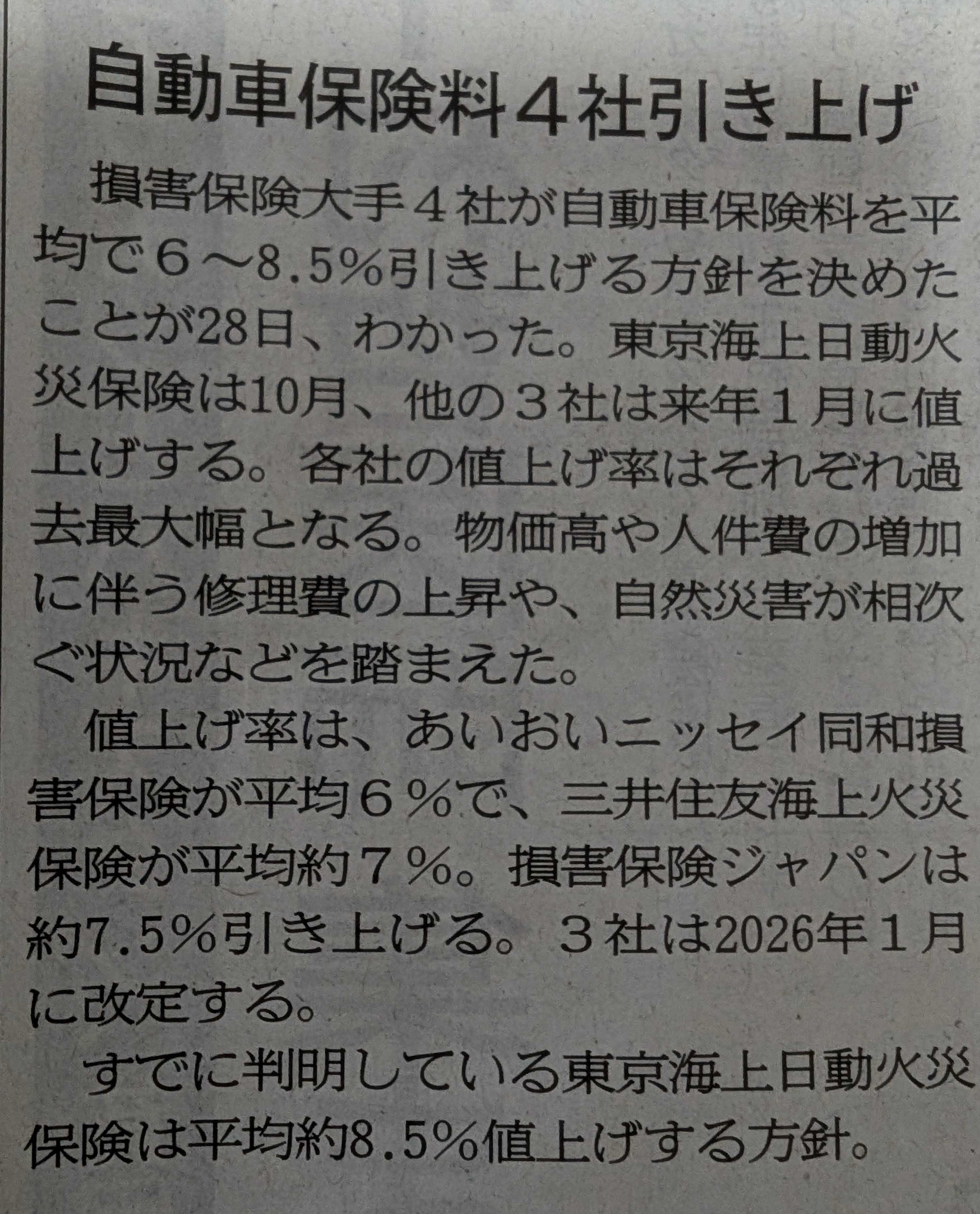 それだけじゃない、人件費、物価高に伴い修理費が上昇しているのも理由のようだけど…
