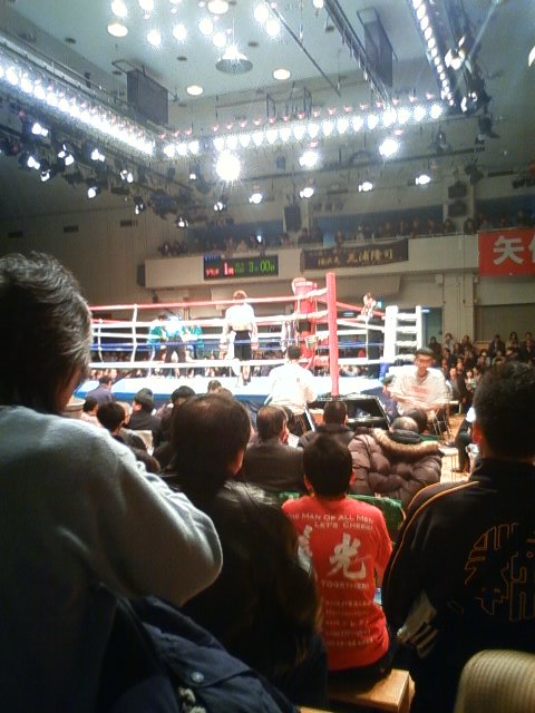 ▼日本S・フェザー級タイトルマッチ 王者:矢代義光(帝拳) vs 1位:三浦隆司(横浜光) 結果:引き分け <0-1・・・94-94、95-95、94-96> 矢代が、プレスをかけながら前に出てくる三浦をアウトボックする展開。三浦が、5回と7回にダウンを奪った。ジャッジ一人が三浦を支持したが、規定の2者に達せず、引き分け。チャンピオンの防衛。▼バンタム級8回戦 SF#5:山中慎介(帝拳) vs 船井龍一(ワタナベ)結果:山中 7回2分54秒TKO勝ち▼L・フライ級8回戦 1位:山中 力(帝拳) vs 益山智行(新田)結果:山中 3回2分8秒TKO勝ち▼48.0kg契約8回戦 Mm#8:島崎博文(帝拳) vs 大内淳雅(角海老宝石)結果:大内 2-1判定勝ち(77-76、77-76、75-78)[TEIKEN.COM]プロボクシング生観戦初体験。テレビで見るのとはわけが違う。ものすごい迫力でした。また、時間が合ったら是非行ってみたいと思いました。