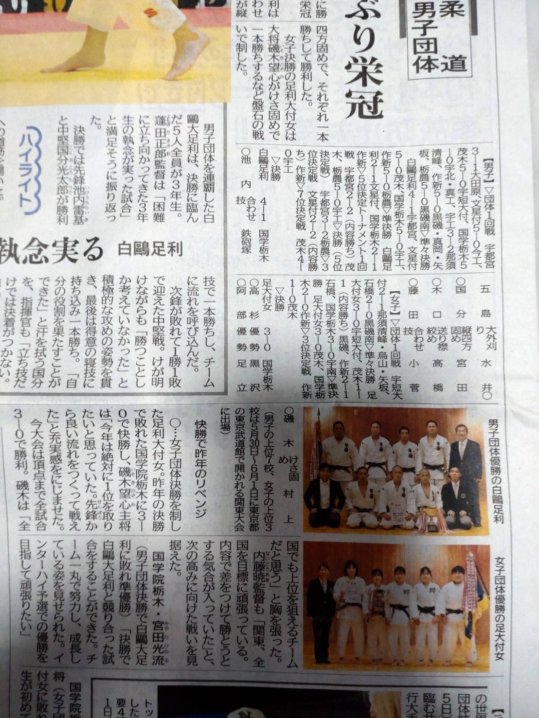 足利大学附属女子高校柔道部、校名変更後初の公式戦で見事県大会優勝しました。おめでとうございます。5月30日から始まる関東大会でも頑張ってもらいましょう。長女明日香も初戦から決勝まで使ってもらい全勝でチームの優勝に何とか貢献出来ました。1年生ながら頑張ったと思います。これから、試合が続くので、怪我なく、頑張ってもらいたいと思います。