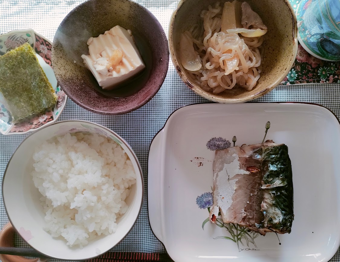 こんにちは~^^こちら知多半島今日は晴れ!^^もう今年もあと今日を入れて3日だけとなりました・・・あっという間にこの一年が過ぎたようにも思っています12月は年賀状書きにいそしんでおりましたが今年は頂いた分のみにしてみようかな・・・なんてグウタラなことを考えてしまいまして・・・書いておりません・・こうなれば新年早々忙しくなるのは必至ですが。。。何かとグウタラ志望が増えることと反省ばかりが増えています今日のお昼はこの頃定番!となってきました「マサバ」の塩焼きそして糸こんにゃく&豚肉&たまねぎの煮物湯豆腐焼き海苔ご飯今日も完食^^ごちそうさまでした^^💛いつも習字教室のページのポチ! ↑ (ここをクリックしてページに入ってね<m(__)m>)ありがとうございます<m(__)m>ホームページに行かれましたらこのような所がありますので矢印の『このブログに投票』をポチお願いします<m(__)m>