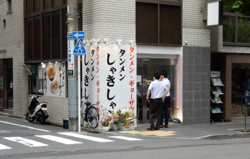 この週末でいろんな作業をうまくできたようだが、食生活がかなり乱れているような気がする。こうなったら、タンメンを食べよう。仕事が控えてあるので、二郎またはそのインスパイアを食うことが難しい。何しろ、ニンニクを多めに入れないとダメだからだ。したがって、多めの野菜を食べようとすれば、タンメンだね。 職場の近くに新たにオープンした「タンメンしゃきしゃき 九段下店」へ。本店は錦糸町にあるが、新橋にも支店がある。葛西にも支店があったが閉店した。 午後11時半頃に入店したら先客1。タン餃セット、半熟たまごの食券を購入。ランチタイムの直前に入店してよかったのだ。なぜなら、すぐ後ろ客が次々に入店しほどなく満席状態となったからだ。 タンメンは野菜の載せ方は何かG系に似てるのではないかね。 というわけでこの作業をしてしまった。 今まで食べたタンメンと同じ薄めの塩味に野菜の甘みが溢れているスープだとわかっていたが、こっちのほうがややパンチが弱いほうだ。たぶんわしが來々軒で刺激を受け過ぎたせいでの錯覚かもしれぬ。ショウガとラー油のなかでわしは初めて方ならショウガをお勧めする。もちもちした食感の平打ち太麺は絡めがよい。モヤシ、ニラ、にんじん、キャベツ、豚肉も入っているが、豚肉の量は同じタイプのタンメンの中でも多めのほうだ。半熟たまごも 餃子は皮がもちもちするが、そこがパリパリまで焼いた。なかなかおいしいと思う。はまなすのようにパリパリまで焼いたというわけではないが、ミニバージョンじゃないかと思ってしまった。この餃子と自家製のラー油との相性もよい。 ヘルシーな一杯だと思う。東陽町まで行かないでおいしいタンメンが食えるとは嬉しい話だね。実際にランチタイムの時に行列もできているそうだ。やはり野菜をたくさん食べたい人も多いみたいだね。