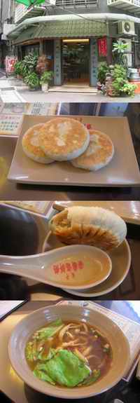 「餡餅」は焼餃子と同じようだが、皮が厚めで、両面が焼けられたものだ。さらに、餡の肉の中に入れたスープも焼餃子より多い。厚い皮を噛むと、熱いスープが餡から流れたということだ。その熱々のスープをレンゲに流して、特製の御粥に入れて食べてもいいし、麺類のスープに入れて食べてもいい。もちろん、たっぷりのお肉とネギと一緒に食べてもいいが、スープが熱いので危ないということだ。