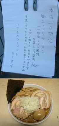 これって、塩こってり1作目らしいにぼし味だと言えるね。うまかったのだ。来週のイベントも来なくてはいけないけど、授業もバイトもあるから、ちょっと遅い時間で訪問するかもしれぬ。