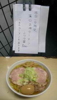 11時55分に店に到着したら、ちょうど小川店主は店に戻った。小川店主から、今日は遅れると声をかけていただいた。いつも定刻で開店する小川店主としては、珍しいことだね。とりあえずおとなしく待とう。そして、12時5分ほど、小川店主はようやく開店。わしを含めて2人入店。もちろん、今日のイベント「薄口醤油ラーメン」の大盛、味付玉子を注文した。