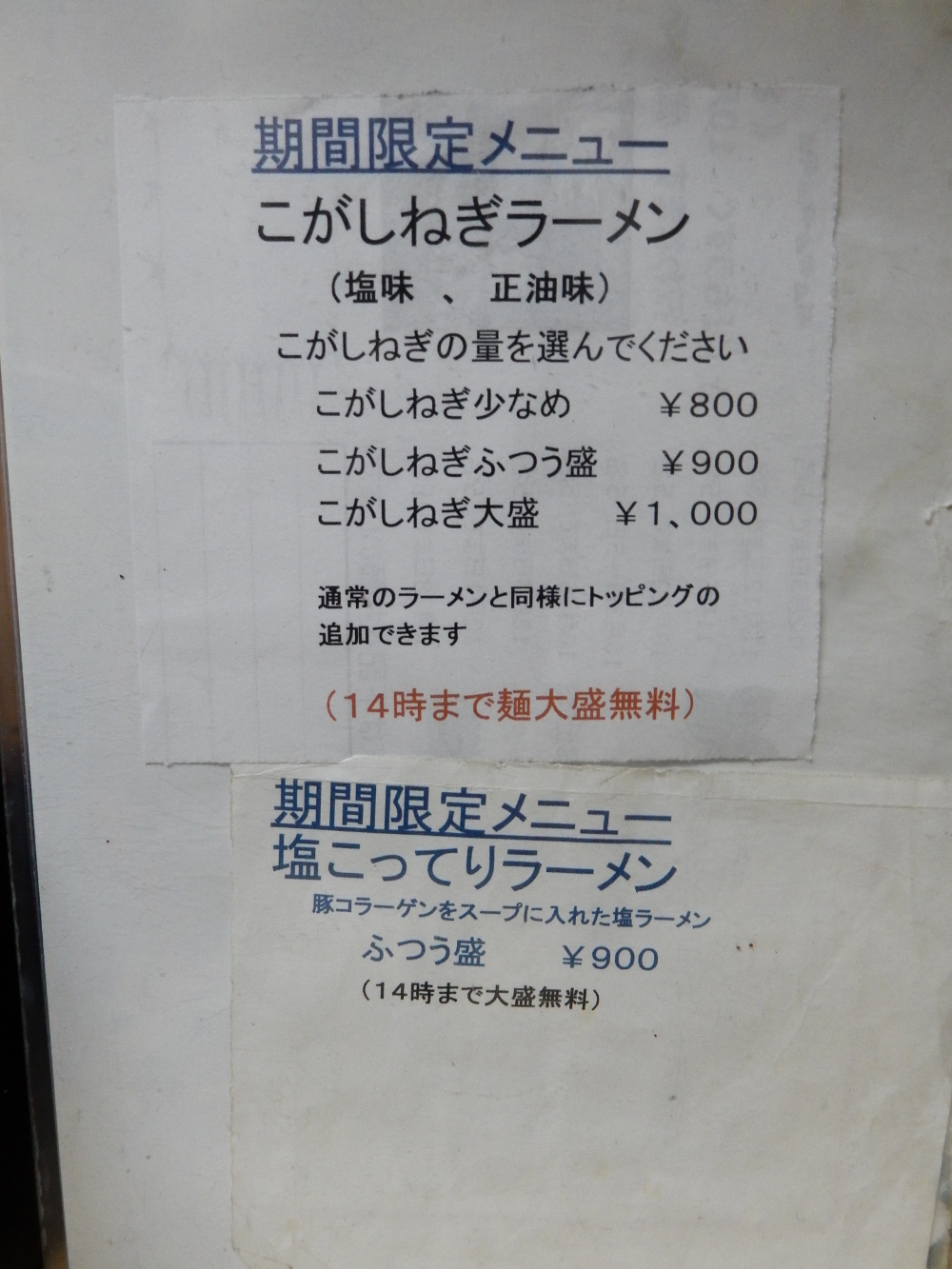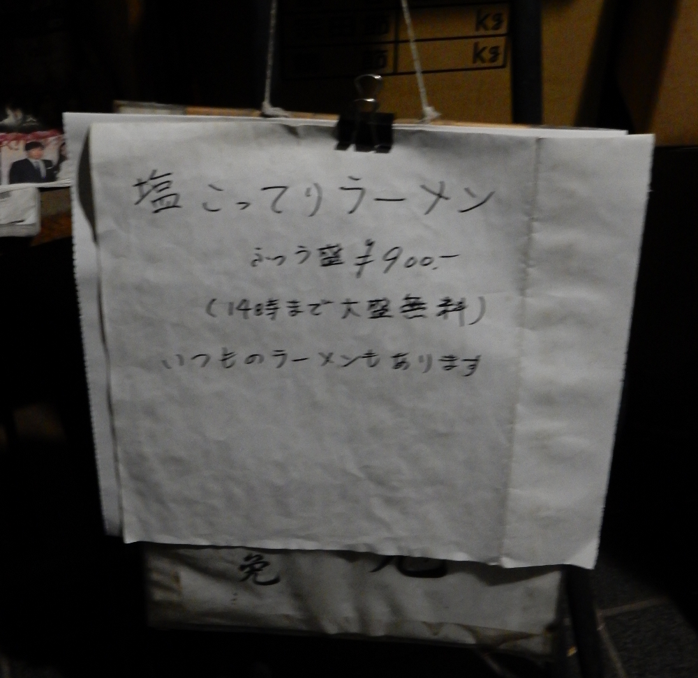 小川店主が恒例のネギ油をかけた作業をしてから提供してくれた。これは塩こってりの一作目ってことだね。コラーゲンは昔より少なくなったが、ネギ油、がんこ系の塩スープ、コラーゲンが一体化して、相変わらずおいしい。一作目など付けていないので、おそらく小川店主は今の味を塩こってりとして定着させていると考えられるが、実際にわしが初訪問してからある時期までに一作目より二作目を提供したことが多かったね。