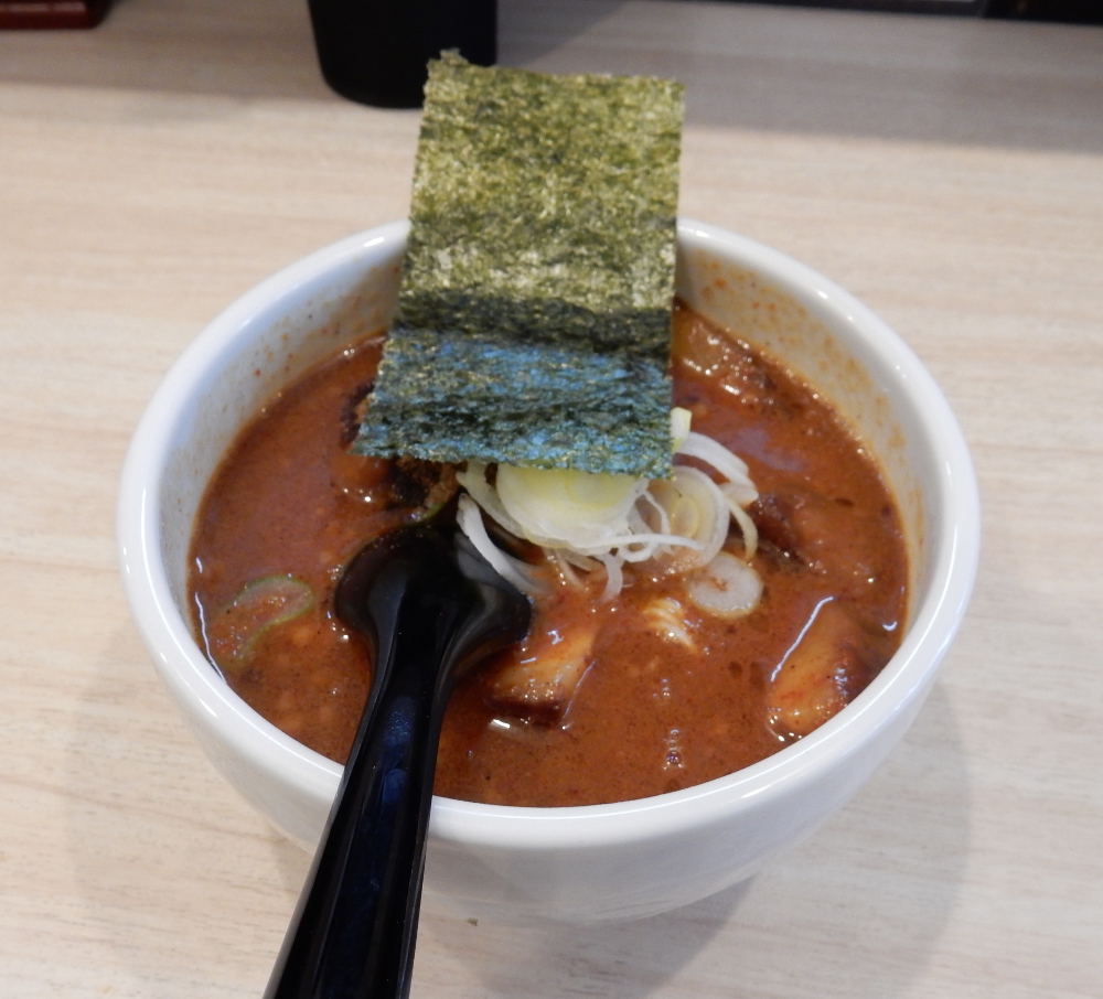 辛味がかなり効いたが、スープもこってりしているので、旨味が溢れる辛口のスープって味わえた。個人的にちょうどいいぐらいな辛さだ。サイコロのバラ肉チャーシューもかなり入っている。最後は卓上に置いたホットで割スープを注いだ。レンゲ2回という量を超えると味がしなくなるってこと。最後まで辛くておいしくいただいた。