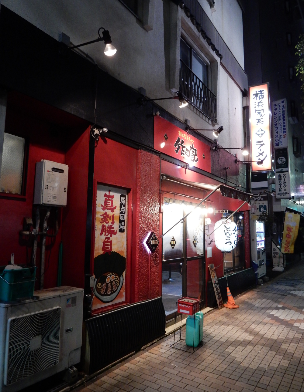 この辺にもう一つの選択肢がある。駅方向へ少し歩いたら、「​ 横浜家系ラーメン 作田家 ​」に到着。「極濃麺家初代 一本氣」というお店からリニューアルしたが、多くの豚骨ラーメンのお店で修行した店主はあの六角家にもいたことがあるってこと。