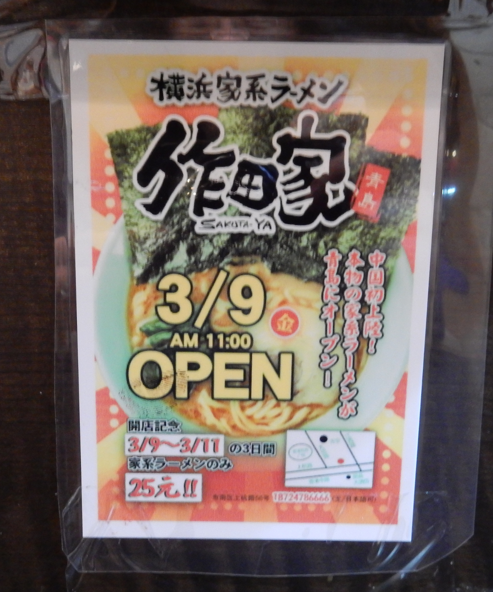 ほぼ満席。作田家オールスーター、中盛の食券を購入し、カタメをお願いした。中国の青島にも出店しているね。サービルの25元はもちろん人民元のことだ。