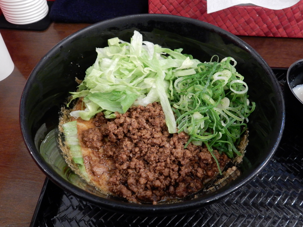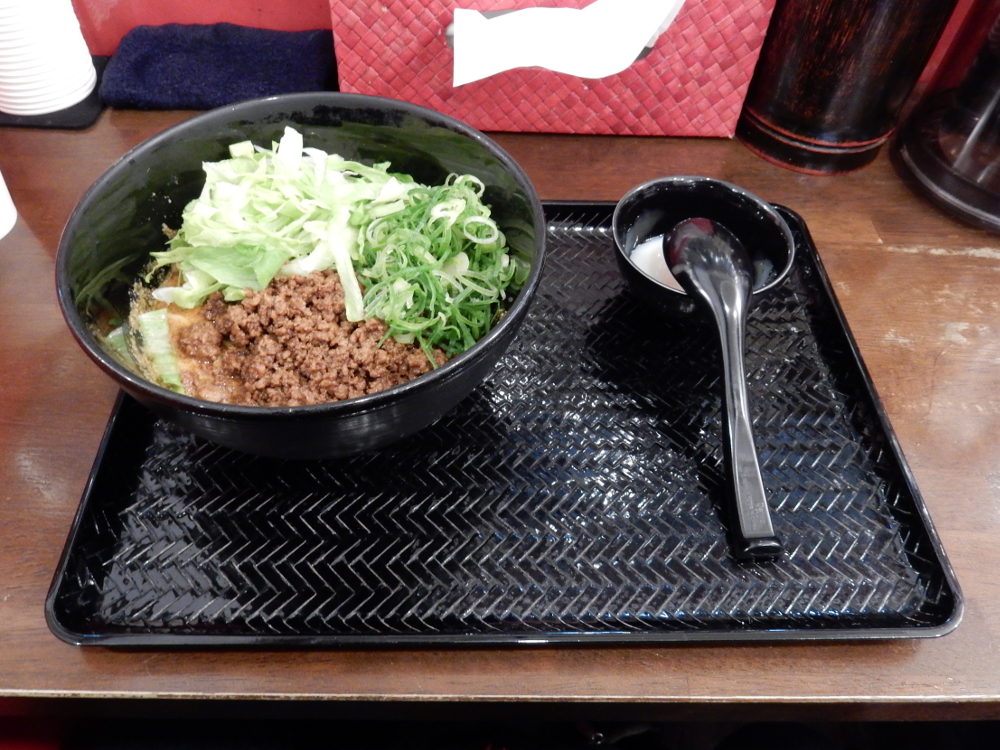 少し遅れの開店。​ 店主の体調が悪い ​ので仕方ない。汁なし担担麺 4辛(麺210g)セット(汁なし担々麺・温泉卵・白飯)の食券を購入。​ 一ヶ月ぐらいぶり ​の訪問も、店主の体調不良に関係あるからだ。