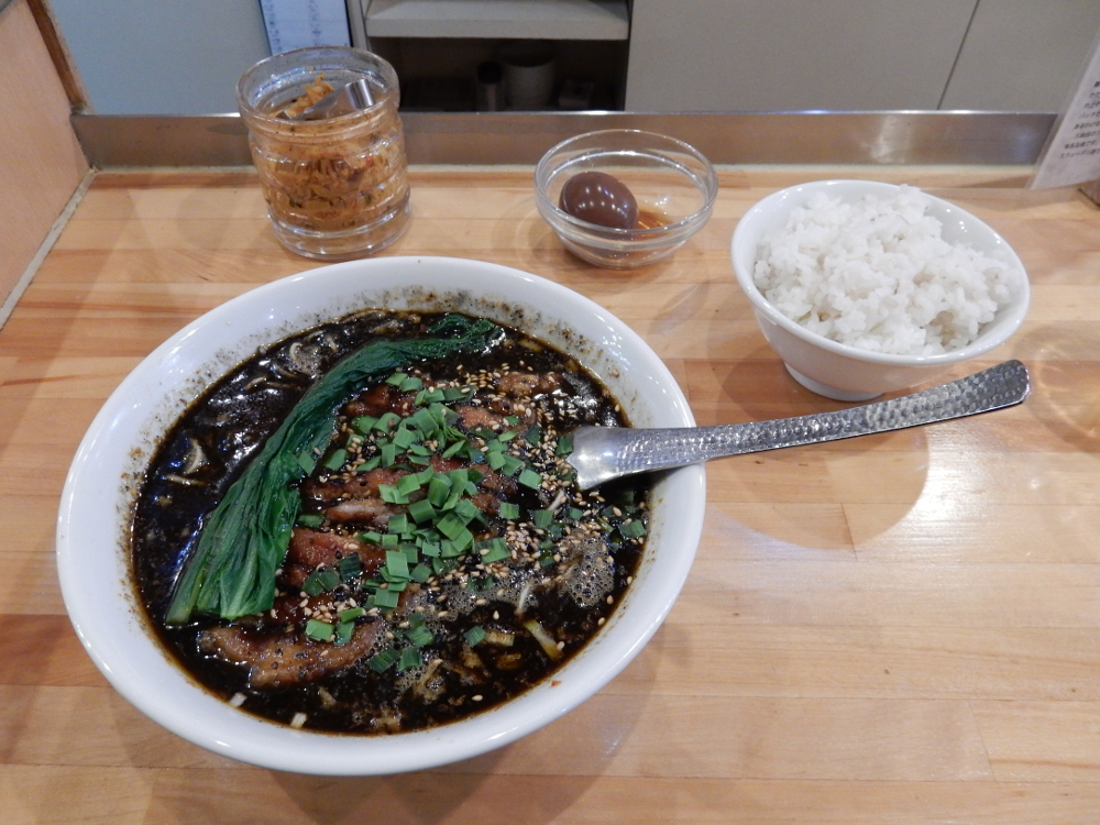 忙しくてあまり店を考えていないままで、「​ 東京担々麺本舗 瀬佐味亭 ​」に入店してしまった。来週末までの仕事を考えれば、​ 体調管理 ​も大事にしないとダメだね。黒担担パーコーのスーパーホット、麦ご飯を注文し、クーポンでほかほか煮込み茶玉子をお願いした。