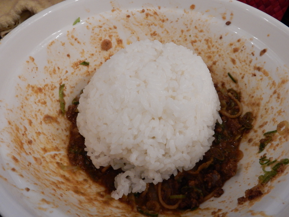 ここの4辛にも慣れてしまった。途中にガーリックパウダーと山椒をさらに投入。