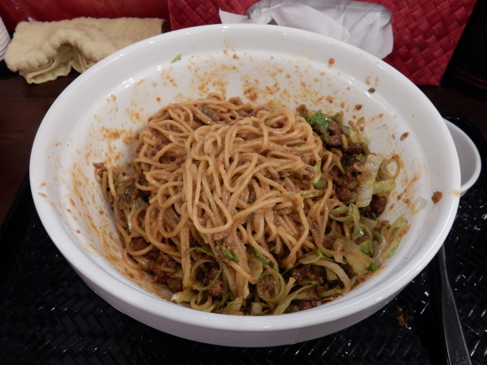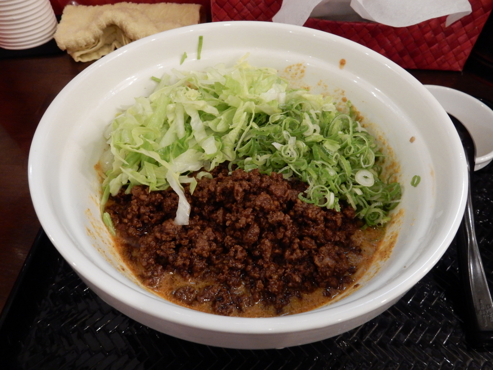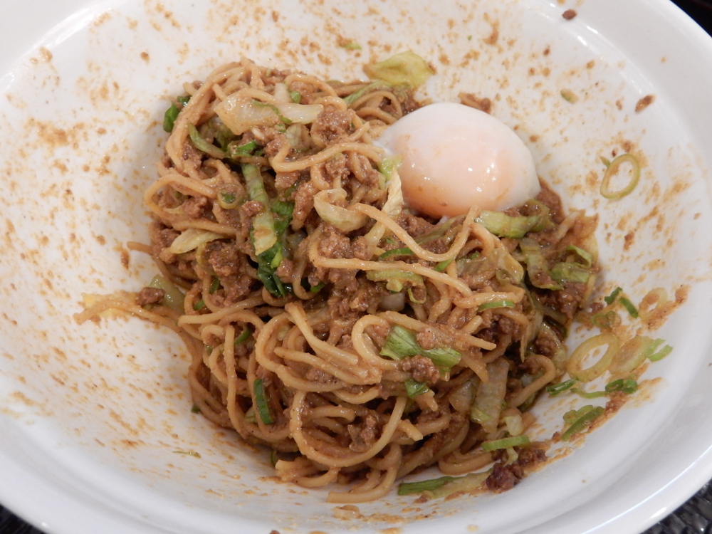 ​ 三週間以上ぶり ​の「​ 広島式 汁無し担担麺 湯島ひよこ堂 ​」の様子を見に行ったら四人待ちなので参戦。5分ほど待ったら着席できたのだ。汁なし担担麺 4辛(麺210g)セット(汁なし担々麺・温泉卵・白飯)の食券を購入。