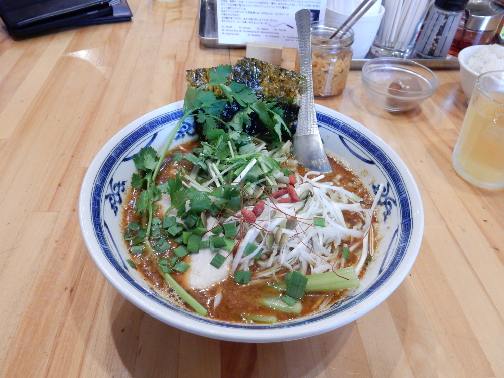 店の都合でまずは麺の提供。女性の同僚たちもお気に入りの金の担担麺のゴマタレはやはりスーパーホットとの相性がよい。野菜の量もここのほかの担々麺より多いので、野菜不足の解消もできる。