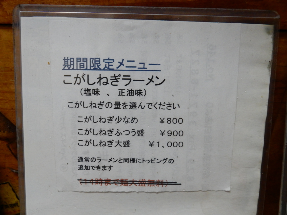 今は期間限定としてこがしねぎラーメンを提供している。