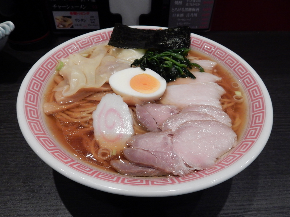 すでに先客がいた。チャーシューメン、麺大盛、ワンタンの食券を購入し、現金で煮玉子をお願いした。