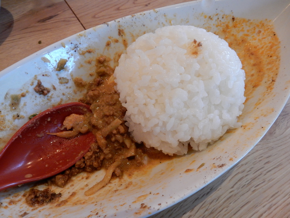 小麻婆飯も頼んだので麺の大盛を頼まなかった。タレは多めだったのに、麺を食べ切れたタイミングで残りがかなり少ない。これも麺の絡めのよさの証だね。