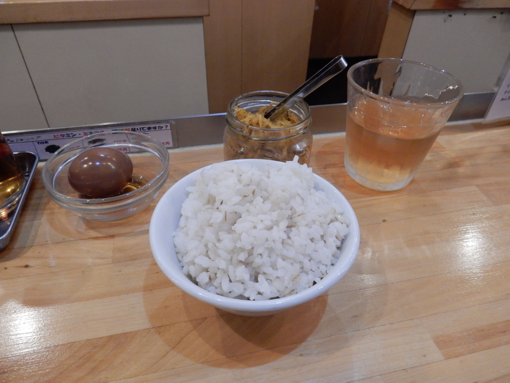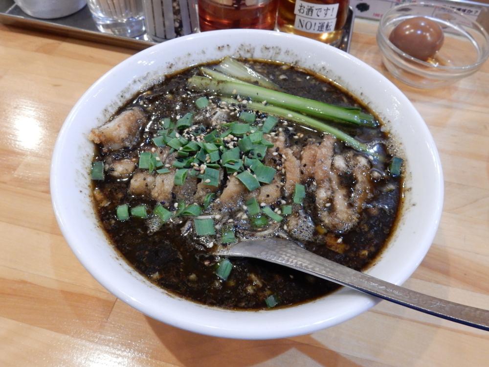 すでに半分の席が埋まっている。黒担担パーコーのスーパーホット、麦ご飯を注文し、クーポンでほかほか煮込み茶玉子をお願いした。
