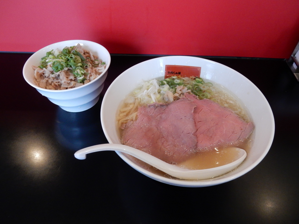 優しい塩気なので飲みやすいが、コクがあるものの流行ってきた牛肉麺に比べればまろやかだ。ストレート細麺は絡めが良いが、茹で加減が個人的に微妙。と言っても、この界隈の客に合わせるための茹で加減かな。ローストビーフの下に味玉とカルビが隠されてある。メンマの代わりに牛蒡が入っているのも本店と同じだ。