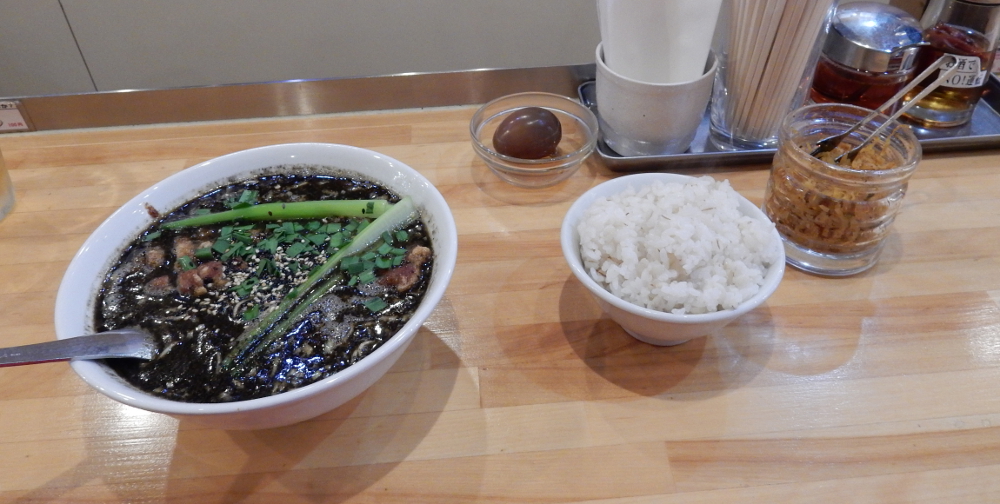 黒担担パーコーのスーパーホット、麦ご飯を注文し、クーポンでほかほか煮込み茶玉子をお願いした。黒担担はまさか​ 三ヶ月ほどぶり ​と思わなかった。