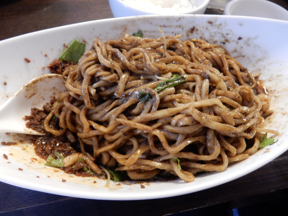 黒ゴマタレと山椒はかなり効いているが、このレベルの辛さと痺れに慣れている。今日の平打ち太麺はいつもよりやや薄めだが、絡めが良い。