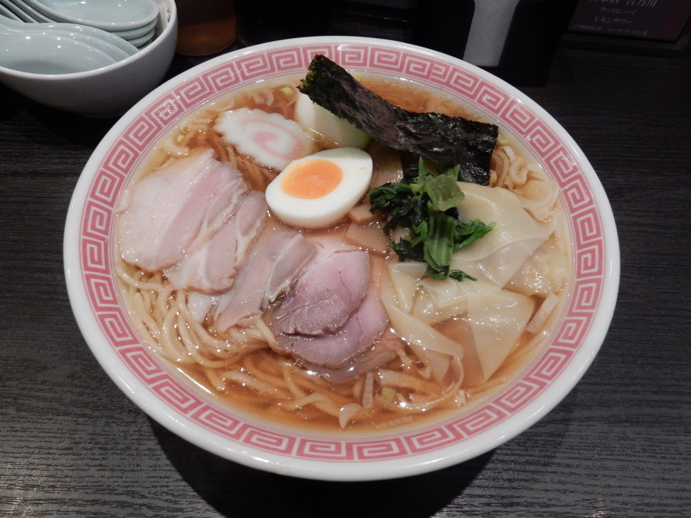 大至には1ヶ月以上ぶりだったが、レギュラーのラーメンには​ もう2ヶ月ぐらいぶり ​だった。醤油味の鶏スープはコクがあり、鶏油も効いている。それに合わせたのは絡めもよいし、コシもある中太ストレート麺だ。何回かよってきたので、新しいコメントができなくなったとはいえ、毎回この麺とスープを食ったら、その相性の良さに驚いている。なぜなら、ふだんこのような組み合わせならもっと細めの麺を使うことが多いからだ。営業再開してからチャーシューは小振りになったが、やはり味付けと固さがちょうどよくておいしい。ここのワンタンも大きいし、薬味の使い方もうまいのだ。