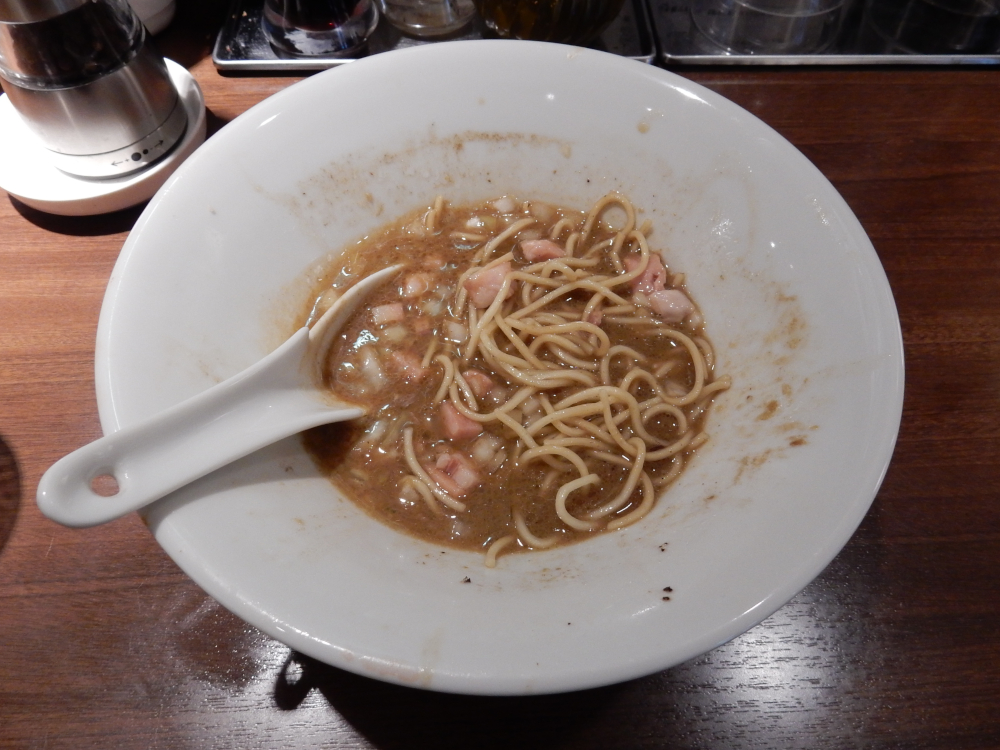 最後はいつもの儀式。残りの麺を残りのスープにかけ、完食。おいしかった。今日も頑張るぜ!