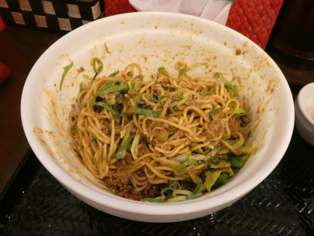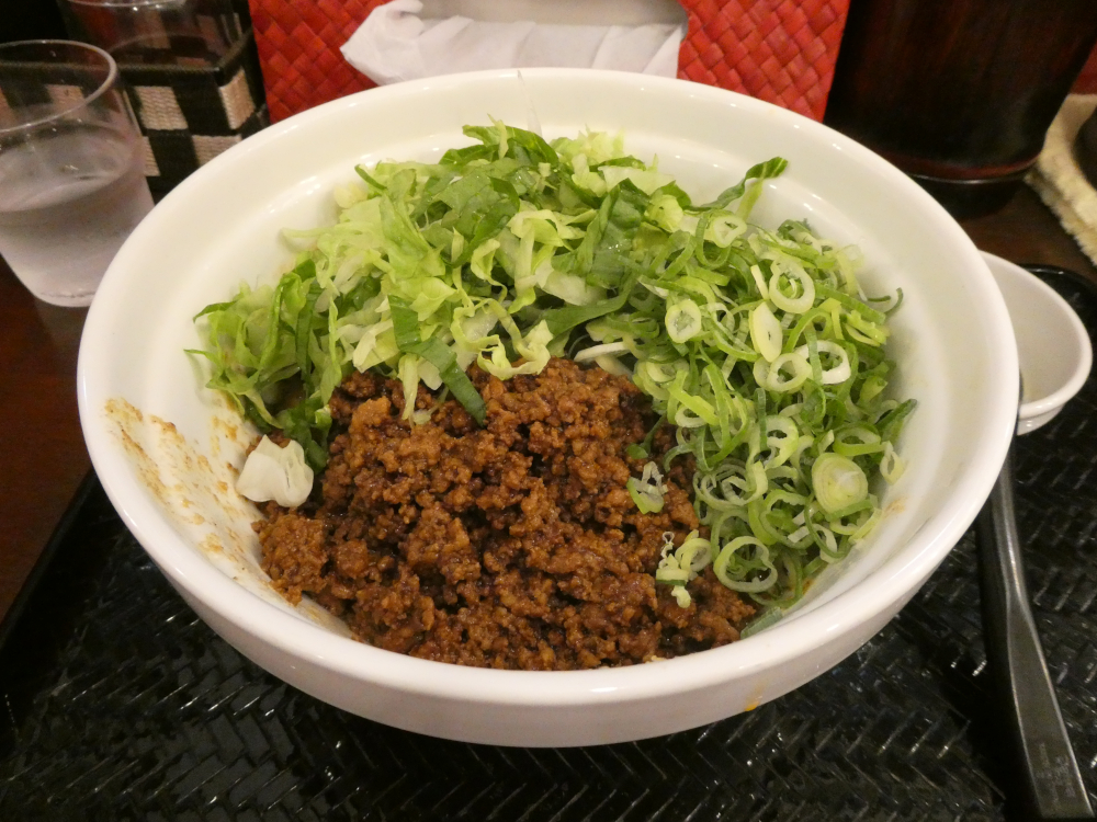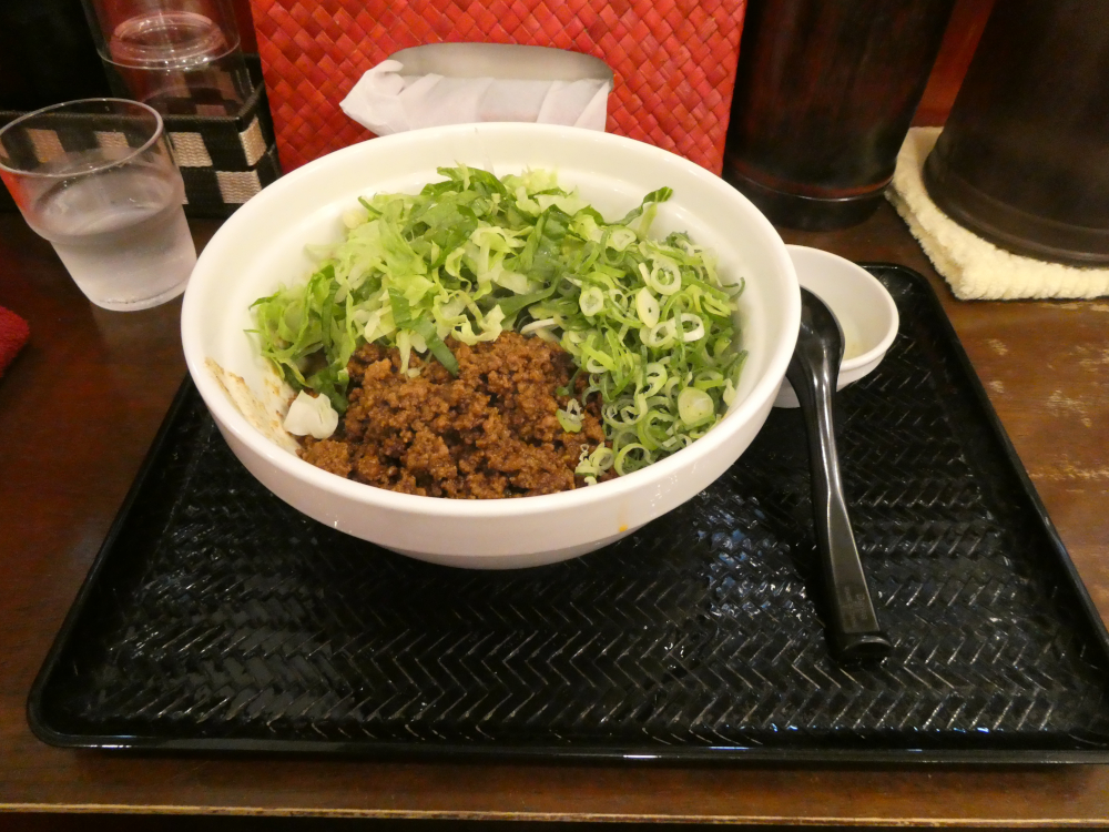 定刻にオープン。すぐ満席となったとはさすがだね。「改良型 広島式汁なし担担麺 210g フルセット」の食券を購入し、4辛をお願いした。
