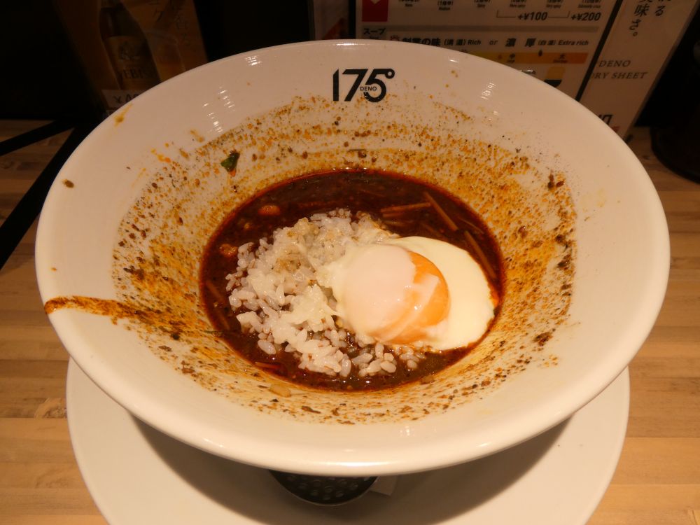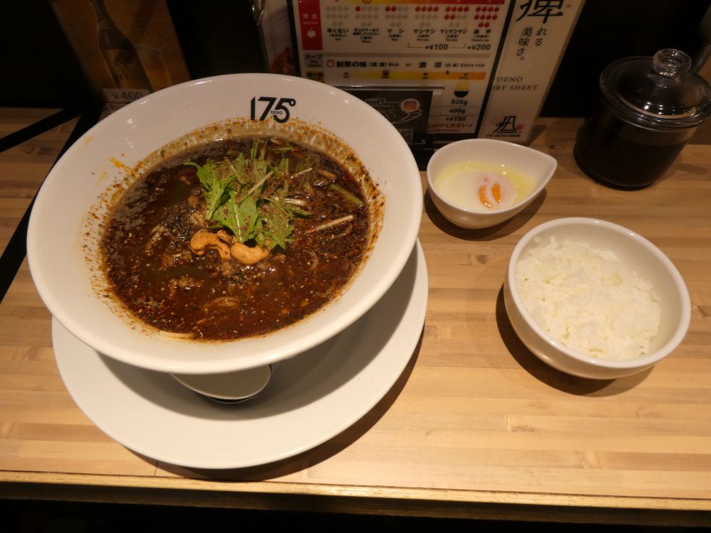 ​ 2ヵ月ほどぶり ​の「​ 175°DENO担担麺 本郷三丁目店 ​」に入店。汁なしを食べようかと思ったが、未食の黒ごま汁ありすごくシビれる、温泉玉子、小ごはんの食券を購入し、辛さをマシ、スープを創業の味とスタッフに伝えた。175°の系列店で汁ありを頼んだのは初めてだね。