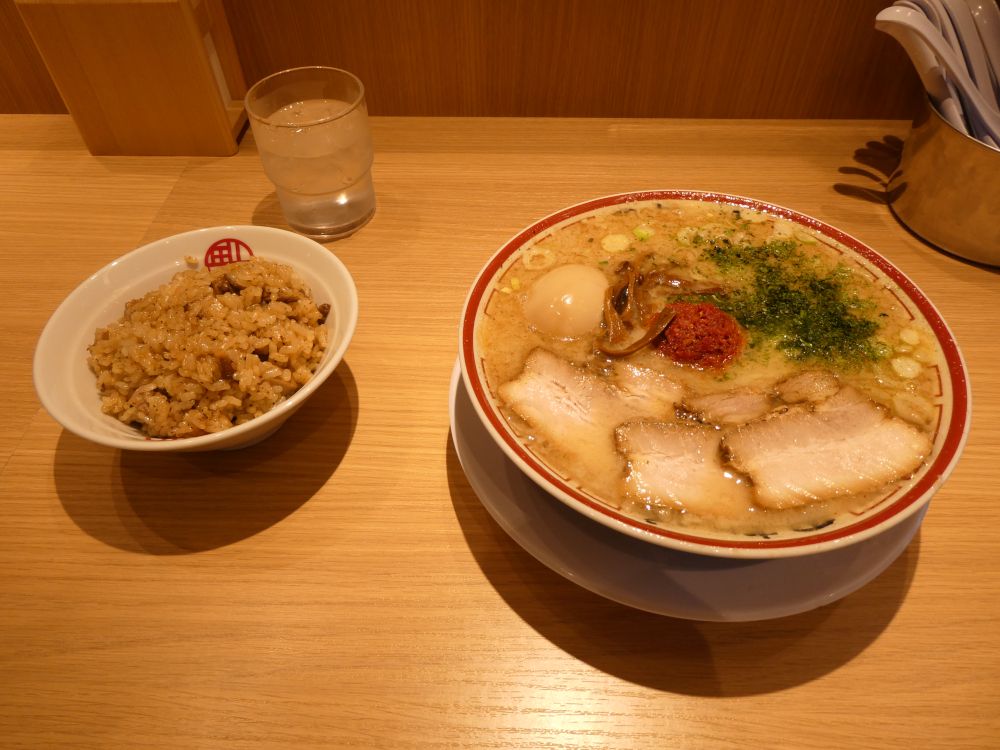 いろんな選択肢があるが、親友のリクエストで、​ 1年以上ぶり ​の「​ 中華そば専門 田中そば店 九段下店 ​」へ。オープンした時に訪問したが、本職場の近くにも​ 秋葉原店 ​があるので、飯田橋界隈に来たら、自然にほかのお店へ行くのではないか。山形辛味噌らーめん、味付玉子、特製肉めしの食券を購入し、こってりお願いしてから着席した。