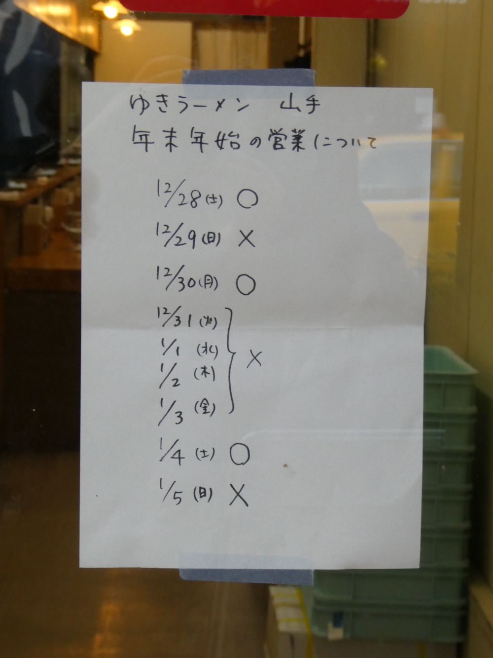今日のブランチは「​ ゆきラーメン 山手 ​」で済ませることをすでに決めた。仕事があればニンニク関係の食事を避ける方針を取っているので、かなりここに​ ご無沙汰 ​している。ただし、​ 年内閉店 ​、​ 営業を2月中旬までに延長する ​ってことも発表されている。だったら誰にも会わないだろうという今日に訪問しよう。​ 復刻 ​のまぜそば、味付玉子、大盛の食券を購入。