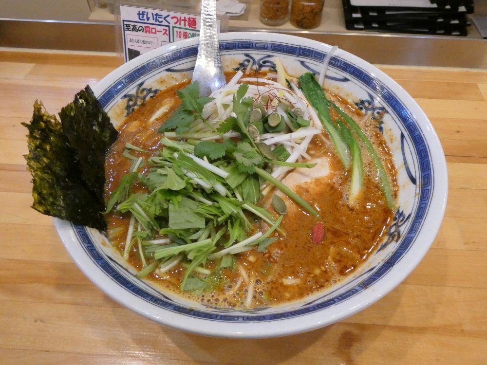 金のゴマのタレは濃厚で香ばしくて、スーパーホットの辛味との相性もよい。細麺は歯切れと絡めが良い。野菜もいっぱい入っていて、今の自分にとって最もいいのだ。
