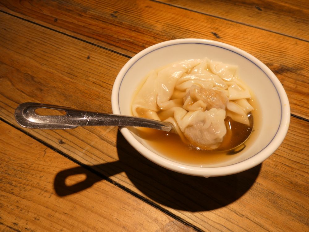 別皿で提供されたワンタンはスープに入っている。たぶん中華そばの鶏スープかと思う。確かに別皿のほうが異なるスープで楽しめる。