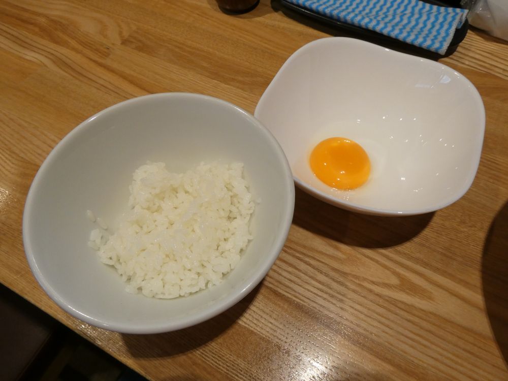次はライスをお願いした。体力を考え、生卵を追加することにした。女将さんから、黄身のみがお勧めだということで黄身のみの生卵をお願いした。