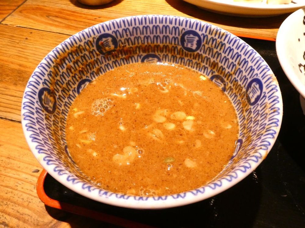 最後はスープ割。スタッフがホットで割りスープを注いでくれた。割りスープでつけ汁を薄めたとはいえ、やはり濃厚だ。