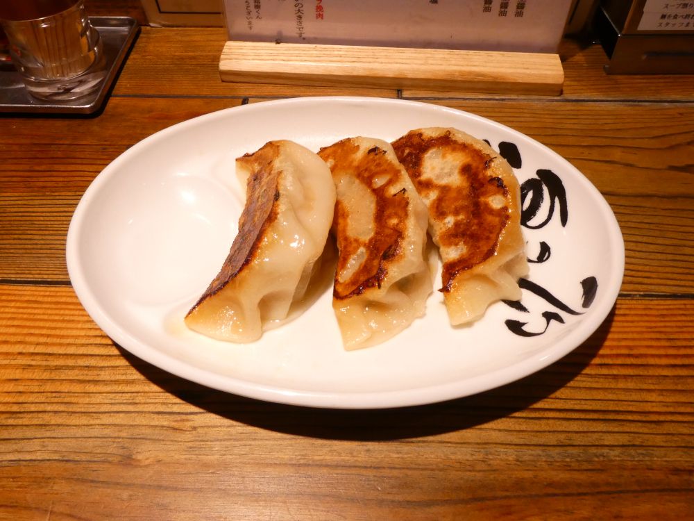 途中に​ 久しぶり ​の心の味餃子の登場。皮がもちもちして、焼け目がパリパリ、餡がジューシーで、なかなかよい。