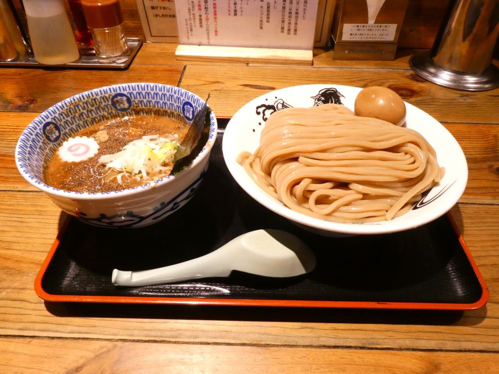 松戸市区へ買い物するついでにブランチを食おう。なぜか、とみ田のつけ麺を食いたくなったので、​ 3ヵ月ほどぶり ​の「​ 松戸中華そば 富田食堂 ​」に入店し、味玉濃厚つけそば大(330g)、心の味餃子3個の食券を購入してから着席。
