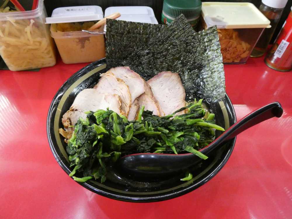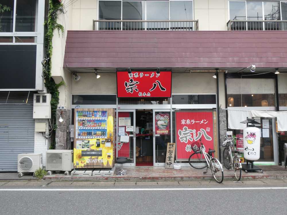 とりあえず明日の備えでニンニクを補足しようと思って、柏へ。雨の日だが、駅から離れる場所にある「​ 家系ラーメン 宗八 ​」に入店。​ 1ヶ月ぐらいぶり ​だ。チャーシューメン(5枚)、味玉、ほうれん草の食券を購入してから着席し、カタメ、コイメをお願いした。