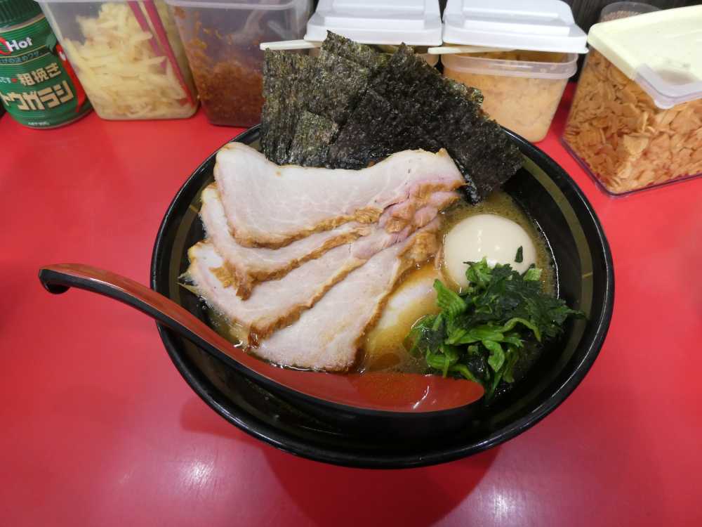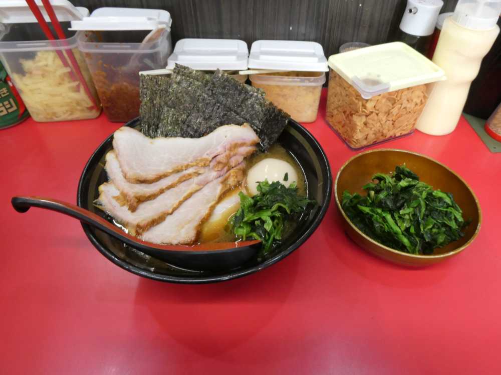 その前にブランチを摂ろう。疲れのせいで、ニンニクが欲しくなったので、​ 1ヵ月ほどぶり ​の「​ 家系ラーメン 宗八 ​」に入店。ほぼ満席。チャーシューメン(5枚)、味玉、ほうれん草の食券を購入し、スタッフにカタメ、コイメを伝えてから着席。