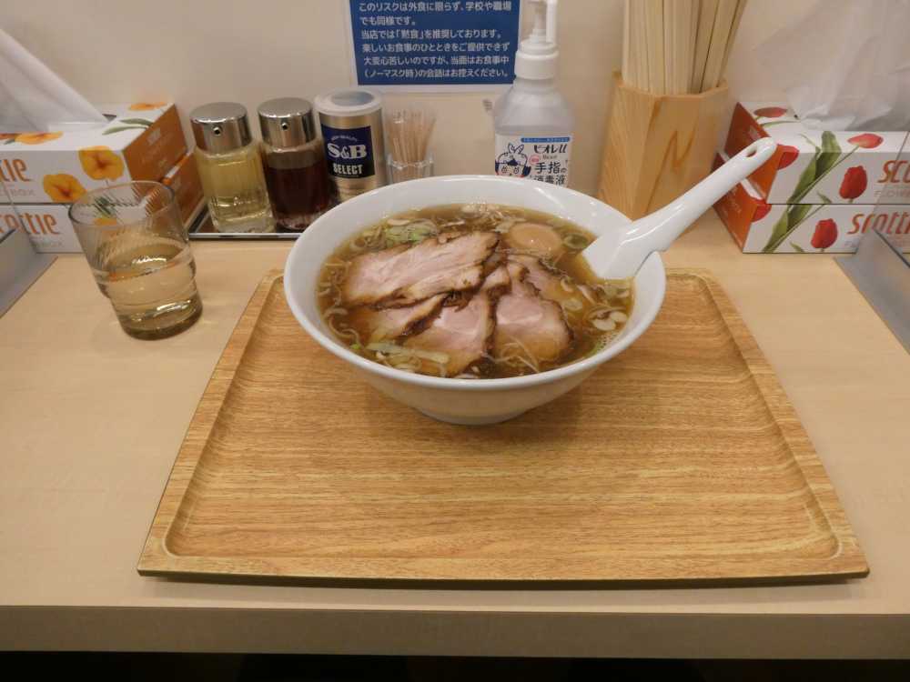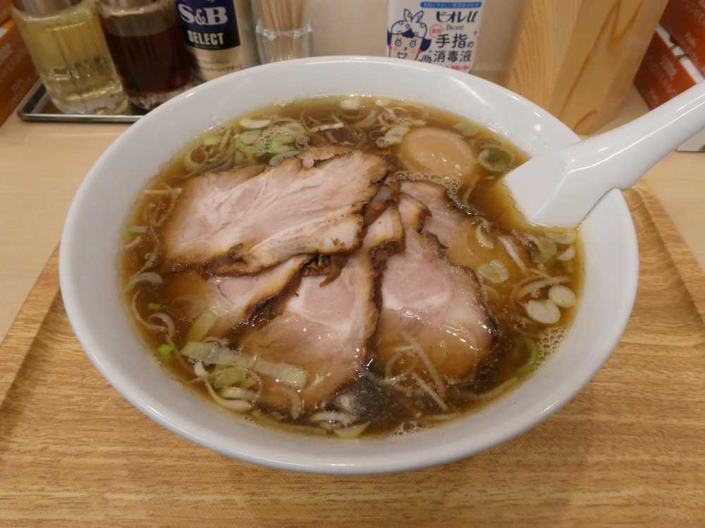 醤油スープは煮干しパワーが全開したのだ。白湯スープと魚粉で濃厚に仕立てたタイプではないが、煮干しの酸味とうま味がしっかりしている。縮れ細麺は茹で加減が柔らかいが、絡めもよいしコシもあり、スープとの相性が良い。ロースチャーシューは大判で味付けもよいしほろっと崩れるぐらいで柔らかい。