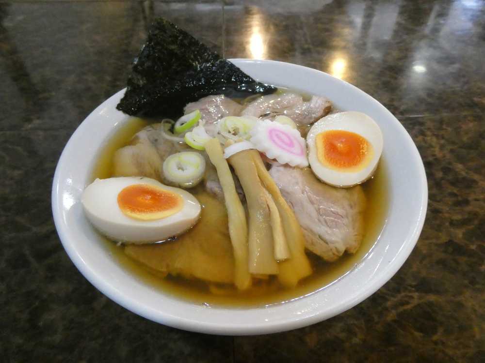 醤油味の煮干しスープは醤油タレよりも油が効いていて、相変わらずあっさりしながらコクがある。ストレート中太麺はもっちりして、綺麗な醤油スープと合う。大判で厚手のチャーシューはほろっと崩れるほど柔らかい。