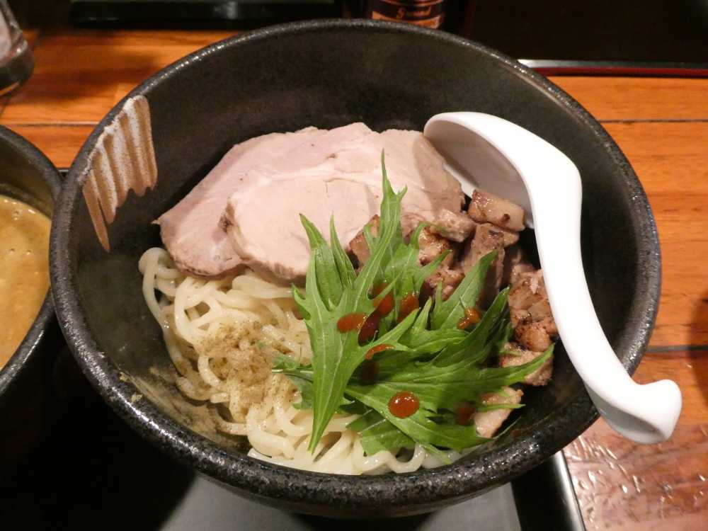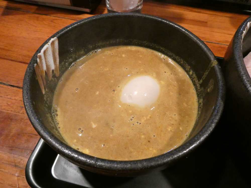 ブラウンの色をしたレギュラーのカレーつけ麺のつけ汁に比べ、色が土色に近い。それでもつけ汁の濃度と粘度が高いし、辛さもじんわりでちょうどよい。個人的に辛口が好みだが、このつけ汁はカレー、辛さのバランスがよい。