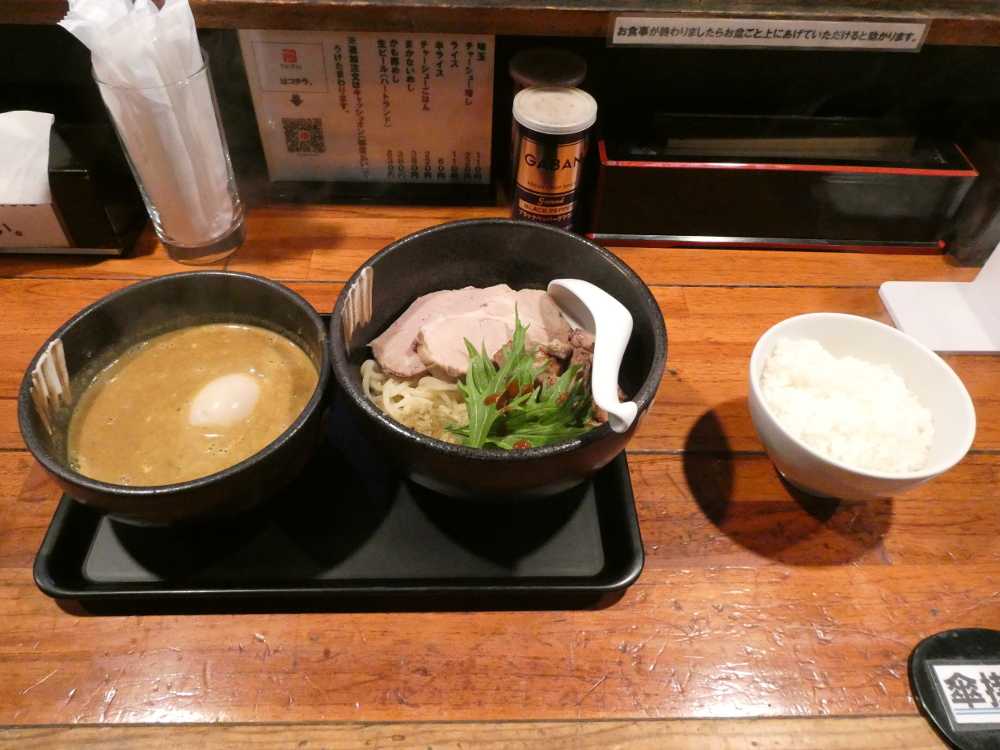 しばらく待ったらご対麺。オペレーションがよいので、半ライスも同時に登場。