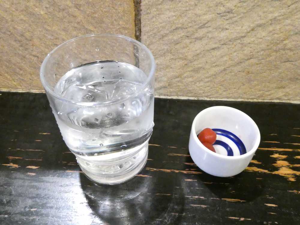 最近梅干しを出さなくなったが、梅干しと水のコンピはオープン当初からやってきた。なくなったきび本店もずっとこれをやってきた。